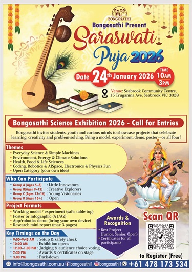 Join us for prayers, music and community vibes—and bring your young innovators to the Bongosathi Science Exhibition 2026 (call for entries).