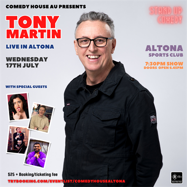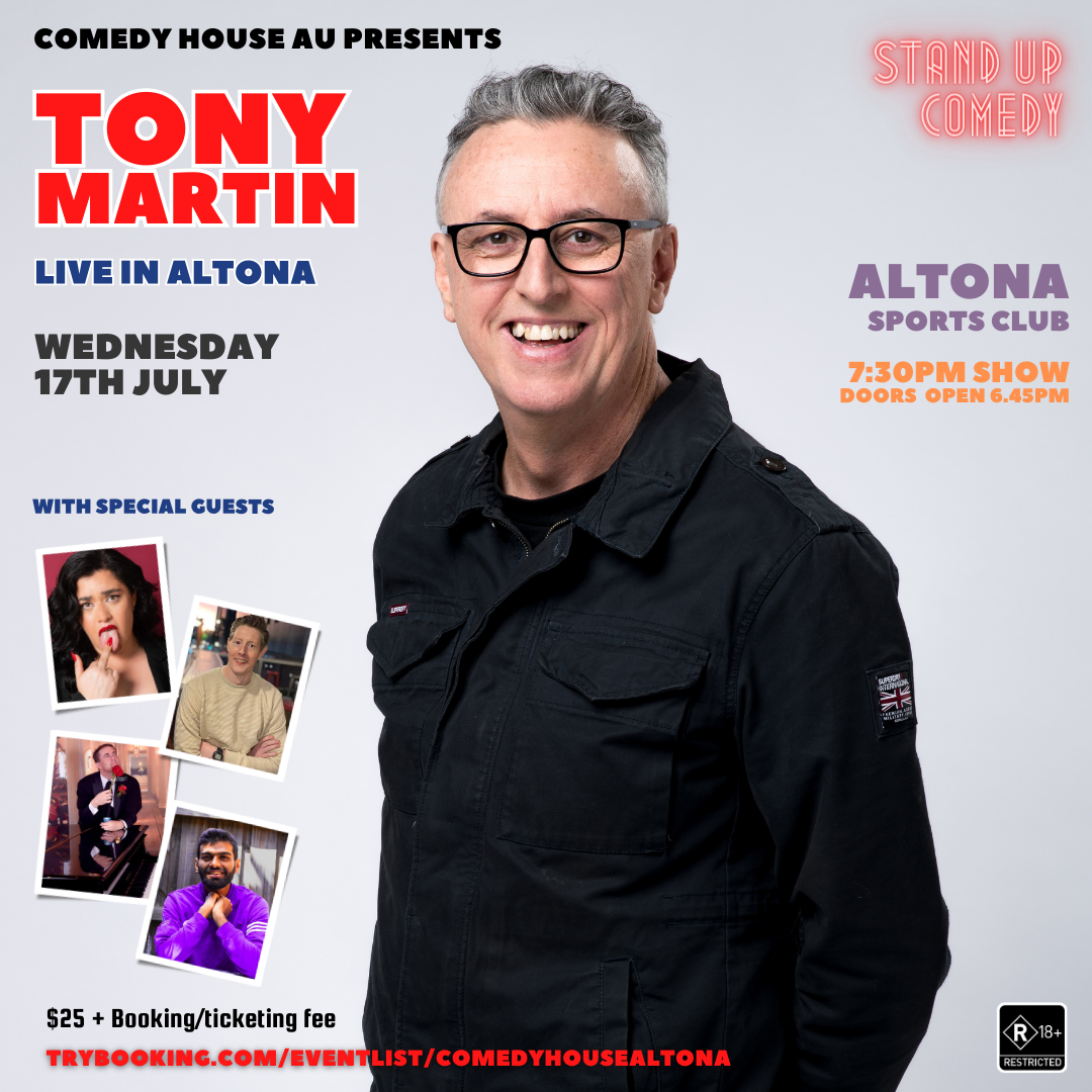 Comedy House Au brings you another huge night of comedy - featuring headliner Tony Martin on 17 July at 7.30pm.